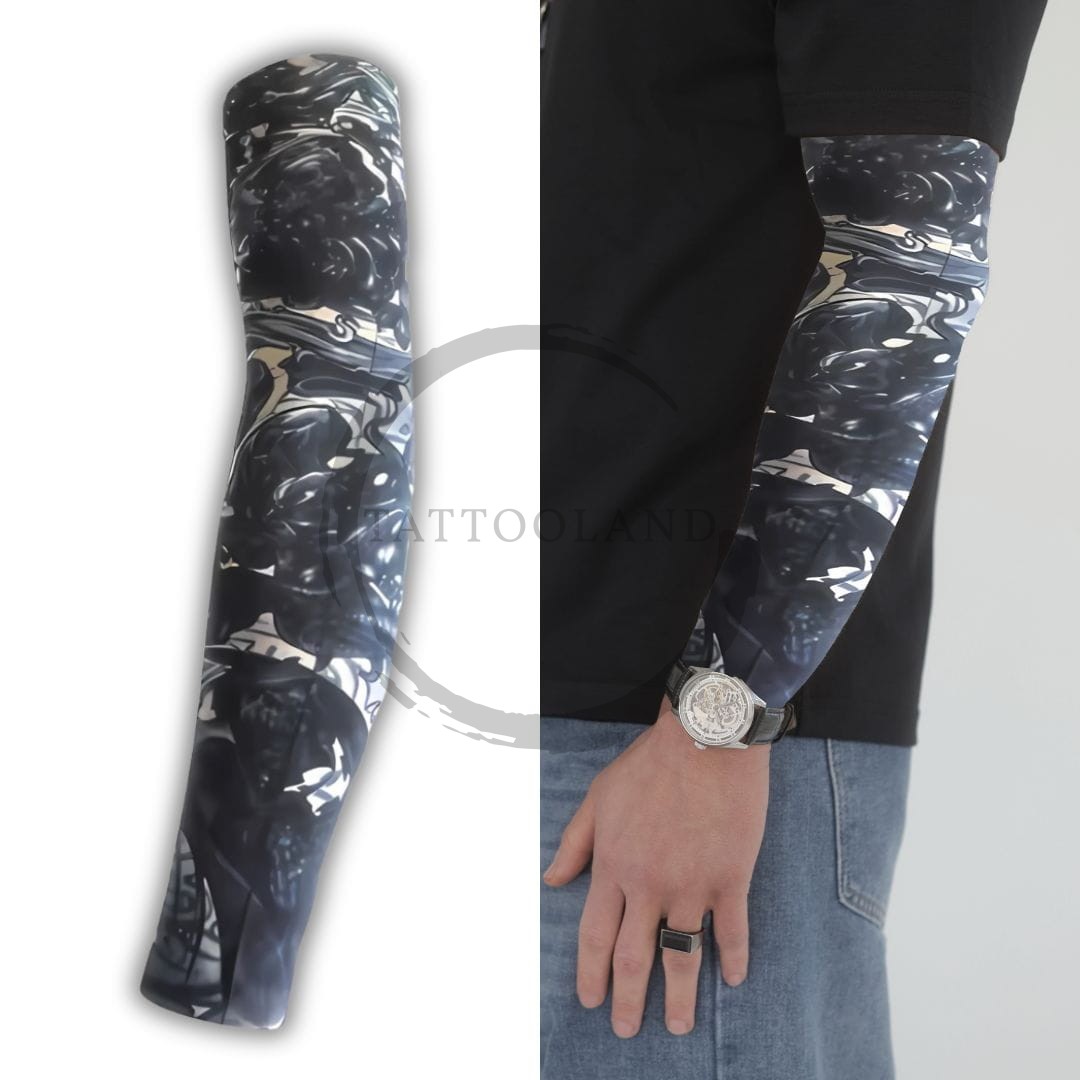Rękaw materiałowy z nadrukiem w stylu tatuażu to efektowny sposób na zmianę swojego wyglądu bez wykonywania prawdziwego tatuażu. Idealny na imprezy, koncerty, sesje zdjęciowe czy jazdę motocyklem.