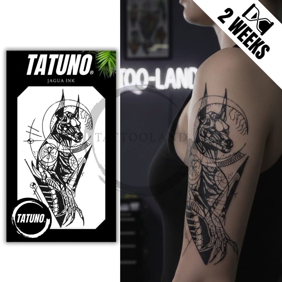 Tusz w tatuażach Tatuno powstaje na bazie naturalnego ekstraktu z owocu Genipa americana (jagua), stosowanego od wieków w Ameryce Południowej do zdobienia ciała. Dzięki nowoczesnej formule barwnik przenika do wierzchnich warstw skóry, rozwija intensywny, niebiesko-czarny kolor i utrzymuje się do 2 tygodni.