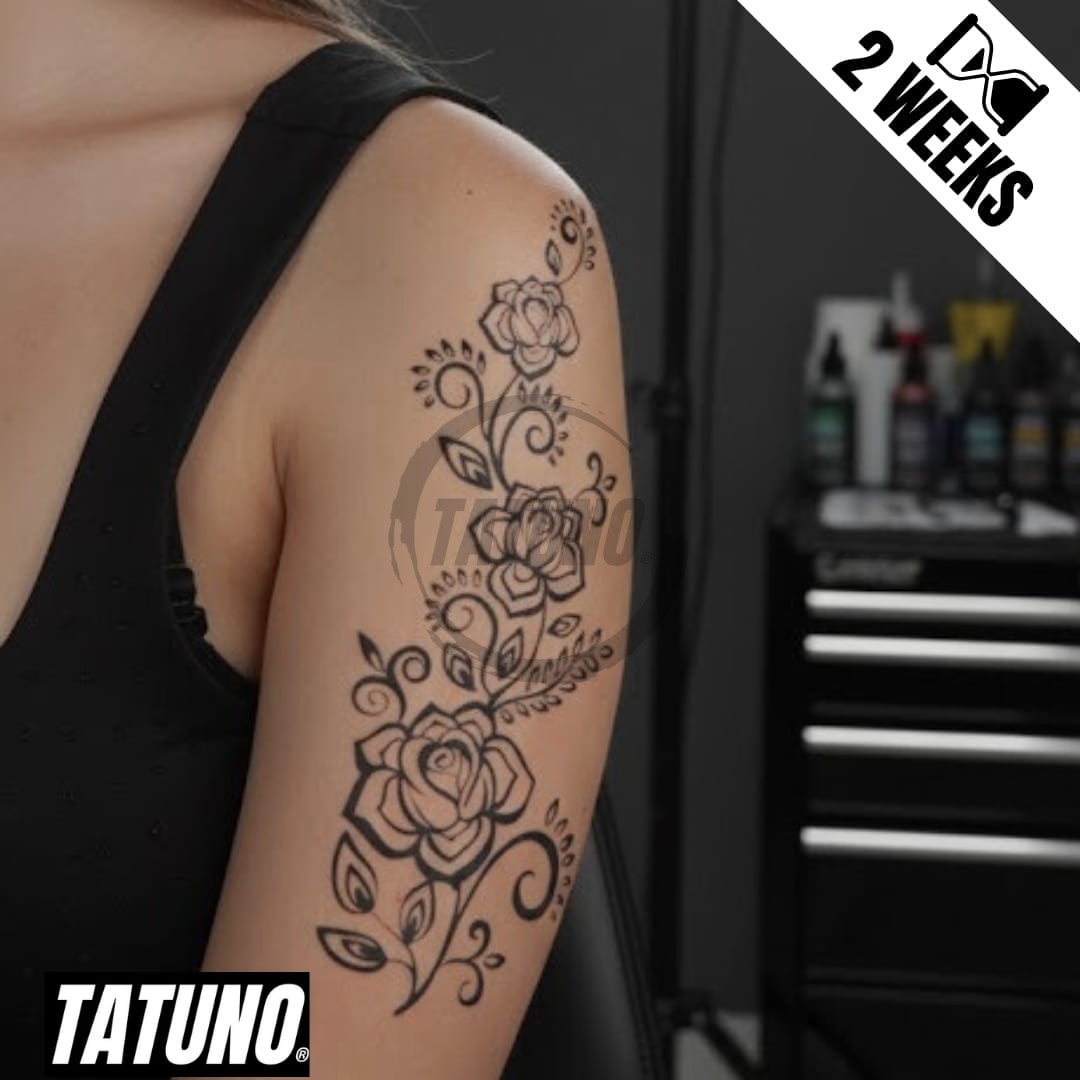 Tusz w tatuażach Tatuno powstaje na bazie naturalnego ekstraktu z owocu Genipa americana (jagua), stosowanego od wieków w Ameryce Południowej do zdobienia ciała. Dzięki nowoczesnej formule barwnik przenika do wierzchnich warstw skóry, rozwija intensywny, niebiesko-czarny kolor i utrzymuje się do 2 tygodni.
