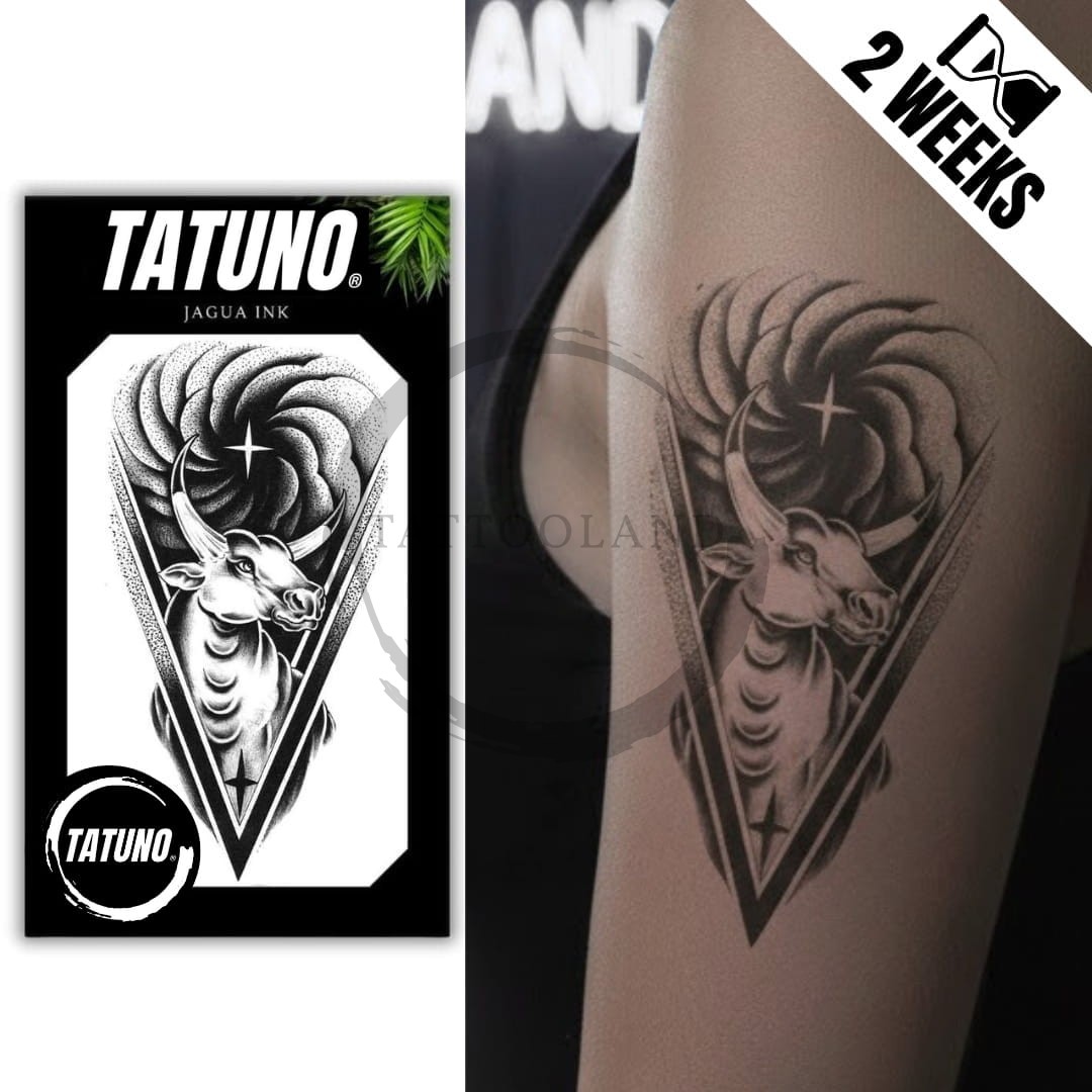 Tusz w tatuażach Tatuno powstaje na bazie naturalnego ekstraktu z owocu Genipa americana (jagua), stosowanego od wieków w Ameryce Południowej do zdobienia ciała. Dzięki nowoczesnej formule barwnik przenika do wierzchnich warstw skóry, rozwija intensywny, niebiesko-czarny kolor i utrzymuje się do 2 tygodni.