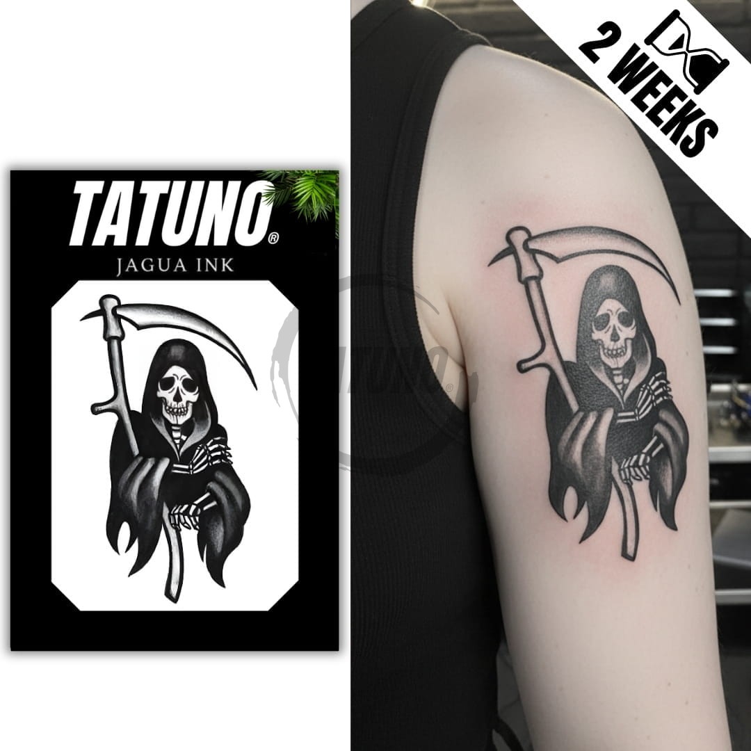 Tusz w tatuażach Tatuno powstaje na bazie naturalnego ekstraktu z owocu Genipa americana (jagua), stosowanego od wieków w Ameryce Południowej do zdobienia ciała. Dzięki nowoczesnej formule barwnik przenika do wierzchnich warstw skóry, rozwija intensywny, niebiesko-czarny kolor i utrzymuje się do 2 tygodni.