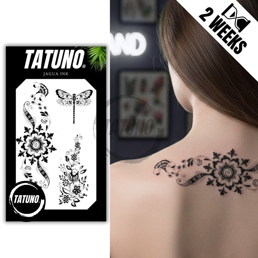 Tatuaż jagua półtrwały ogród ważki[18cmx11cm]