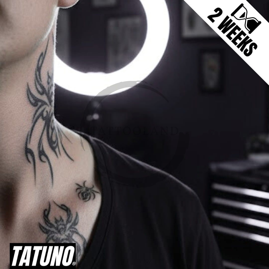 Tusz w tatuażach Tatuno powstaje na bazie naturalnego ekstraktu z owocu Genipa americana (jagua), stosowanego od wieków w Ameryce Południowej do zdobienia ciała. Dzięki nowoczesnej formule barwnik przenika do wierzchnich warstw skóry, rozwija intensywny, niebiesko-czarny kolor i utrzymuje się do 2 tygodni.
