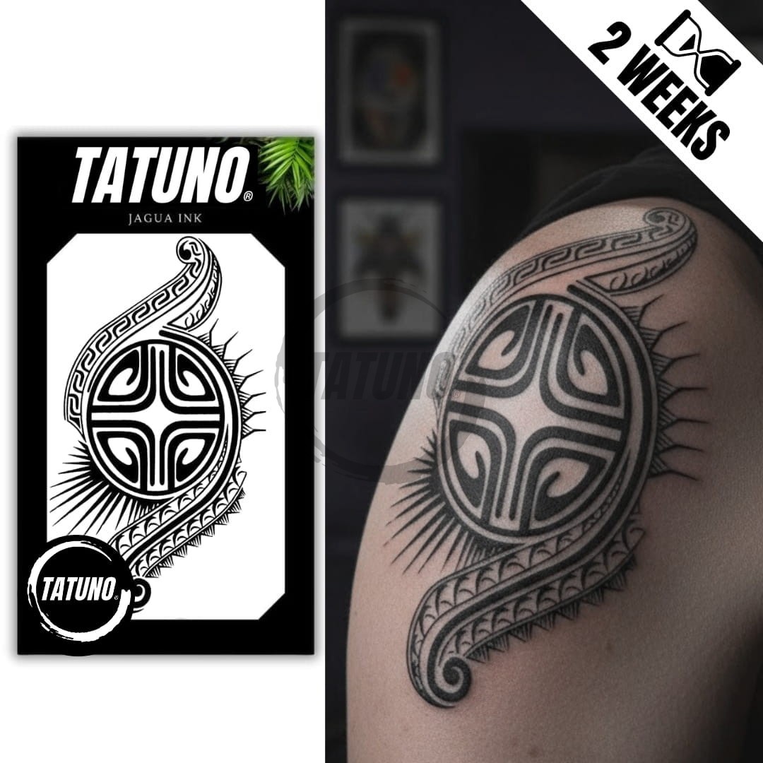 Tusz w tatuażach Tatuno powstaje na bazie naturalnego ekstraktu z owocu Genipa americana (jagua), stosowanego od wieków w Ameryce Południowej do zdobienia ciała. Dzięki nowoczesnej formule barwnik przenika do wierzchnich warstw skóry, rozwija intensywny, niebiesko-czarny kolor i utrzymuje się do 2 tygodni.