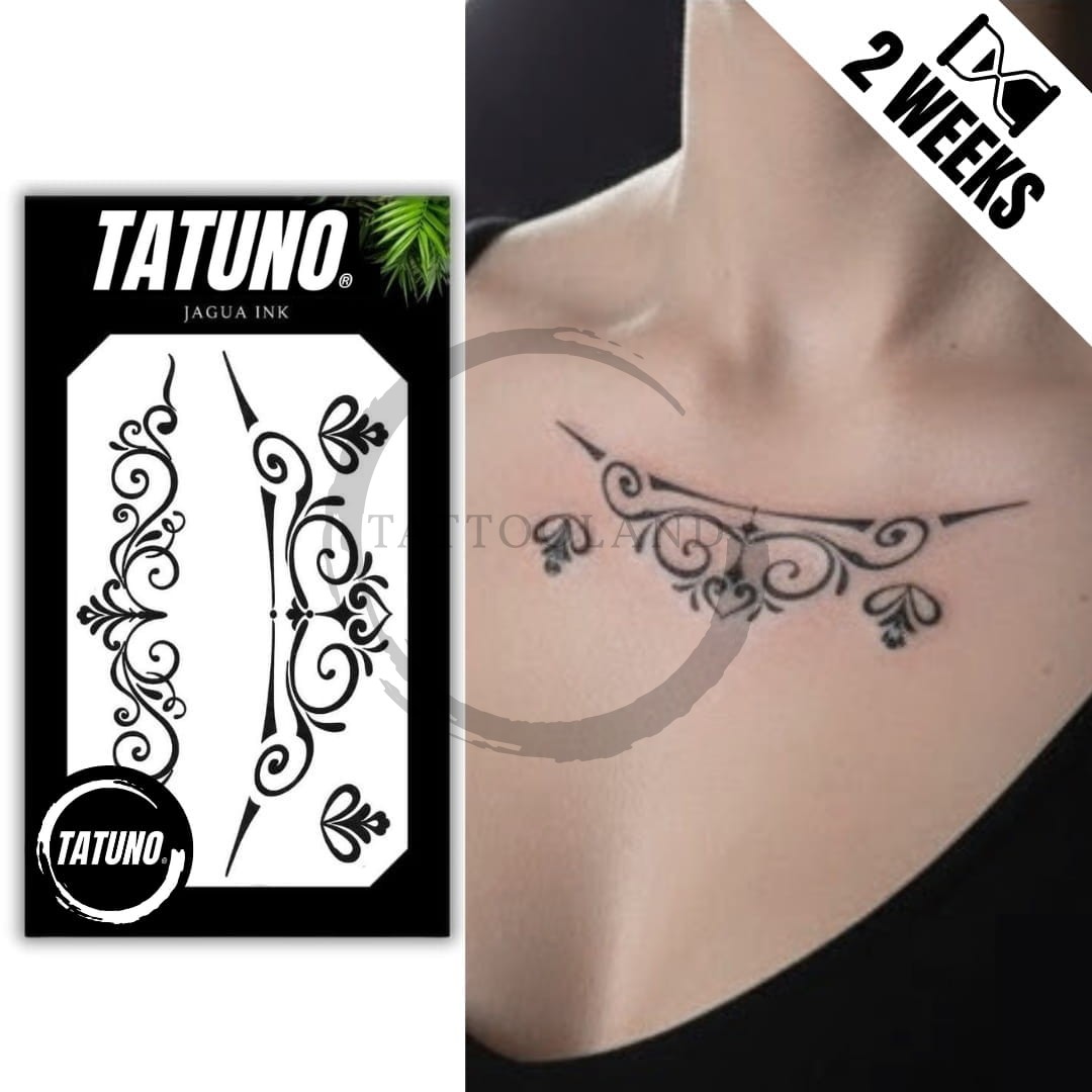 Tusz w tatuażach Tatuno powstaje na bazie naturalnego ekstraktu z owocu Genipa americana (jagua), stosowanego od wieków w Ameryce Południowej do zdobienia ciała. Dzięki nowoczesnej formule barwnik przenika do wierzchnich warstw skóry, rozwija intensywny, niebiesko-czarny kolor i utrzymuje się do 2 tygodni.