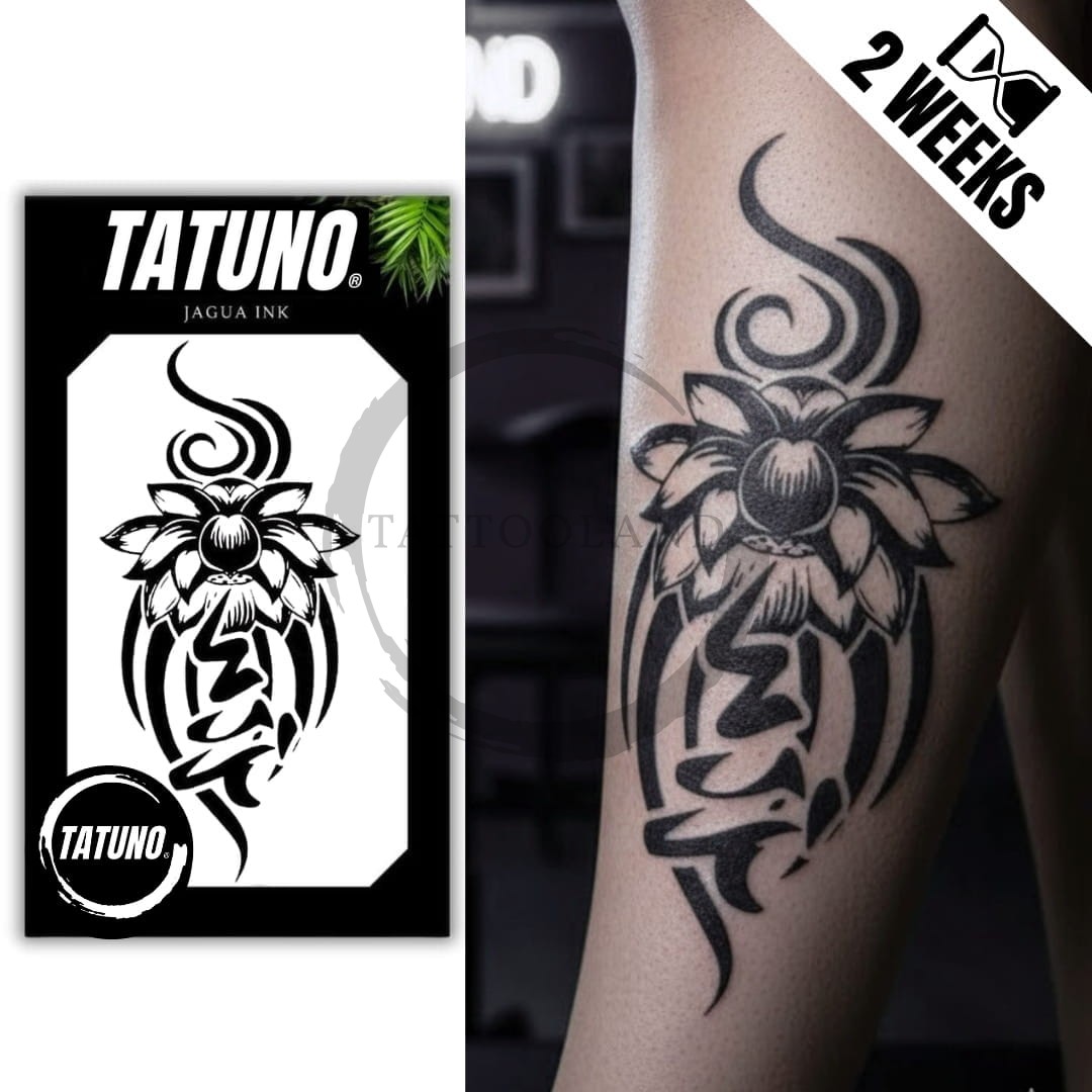 Tusz w tatuażach Tatuno powstaje na bazie naturalnego ekstraktu z owocu Genipa americana (jagua), stosowanego od wieków w Ameryce Południowej do zdobienia ciała. Dzięki nowoczesnej formule barwnik przenika do wierzchnich warstw skóry, rozwija intensywny, niebiesko-czarny kolor i utrzymuje się do 2 tygodni.