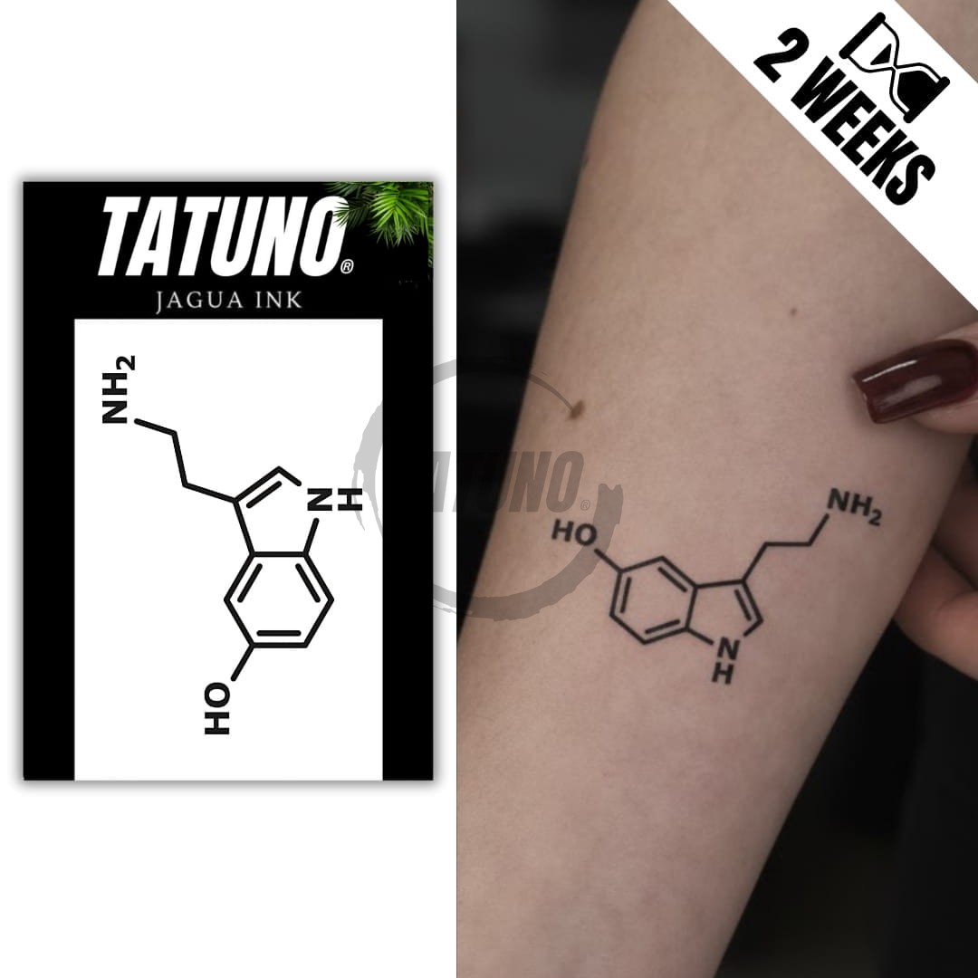 Tatuaż jagua półtrwały wzór chemiczny serotonina [4cm x 6cm]