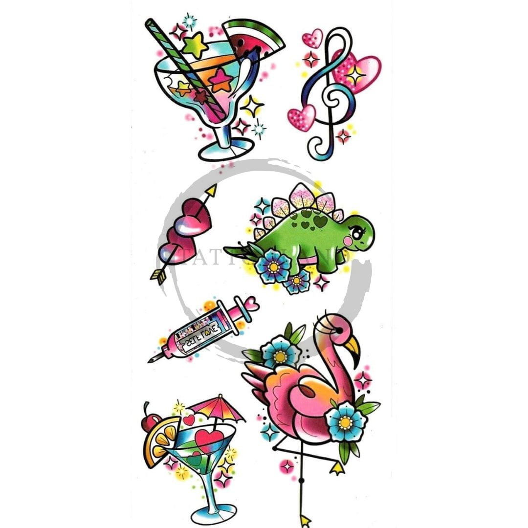 - Produkt nie jest zabawką. Dzieci nie powinny się nim bawić. Nie stosować na wrażliwą, podrażnioną lub uszkodzoną skórę. Unikać kontaktu z oczami, ustami i błonami śluzowymi. W przypadku wystąpienia reakcji alergicznej lub podrażnienia – natychmiast usunąć tatuaż i przemyć skórę wodą z mydłem. Nie stosować na skórę w okolicach oczu. Produkt jednorazowego użytku. Przechowywać w oryginalnym opakowaniu, z dala od dzieci, zwierząt, źródeł ciepła i ognia.
