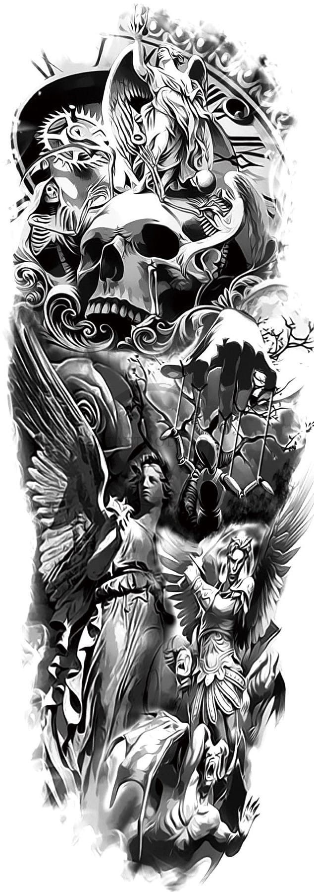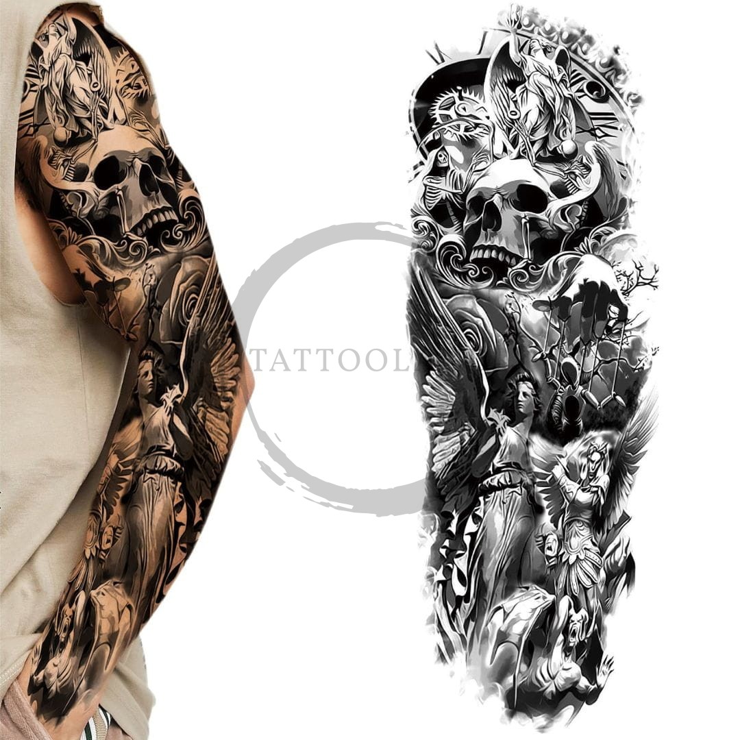 Tatuaż tymczasowy zmywalny męski rękaw czacha szkielet
