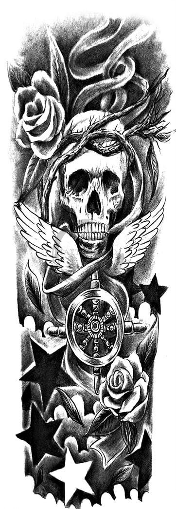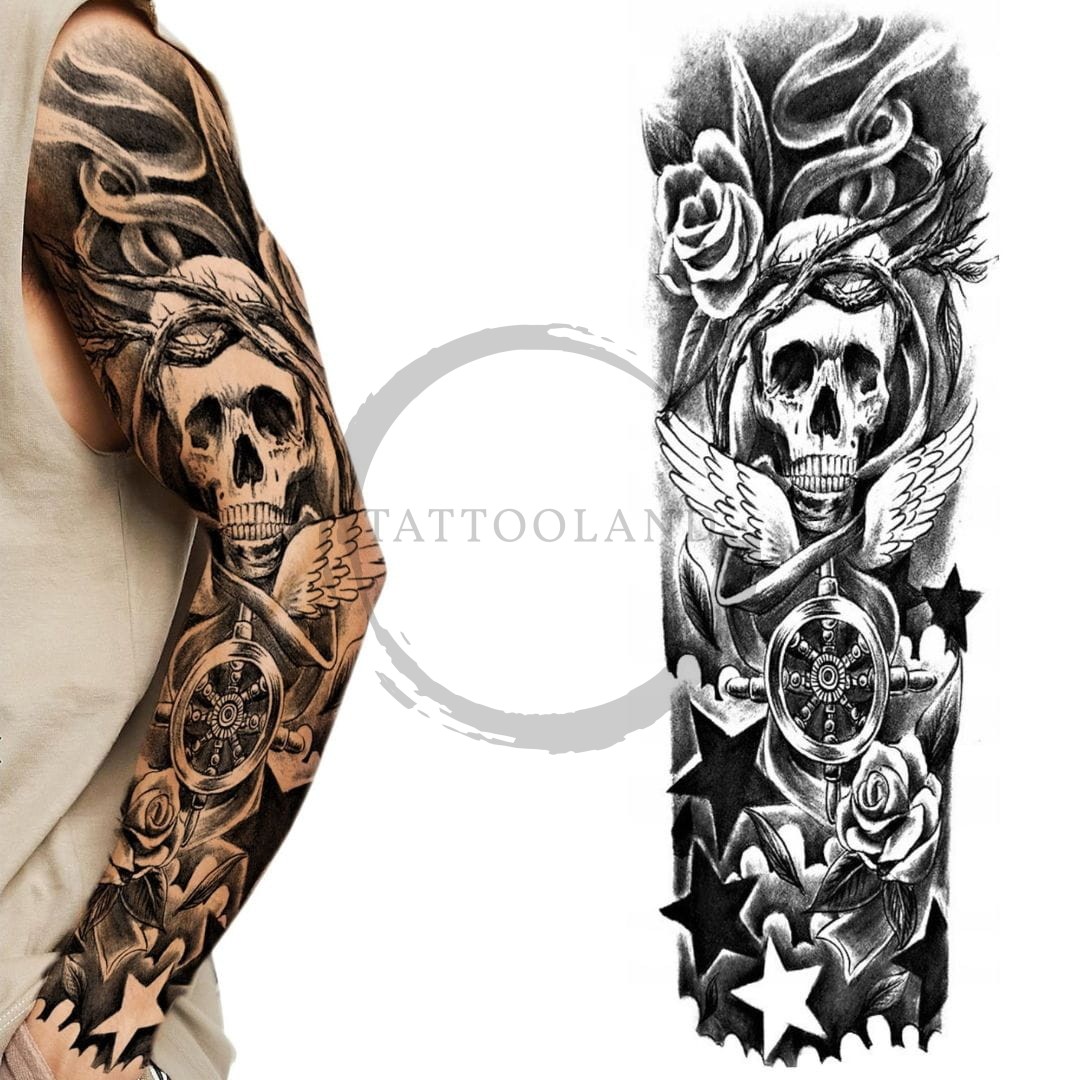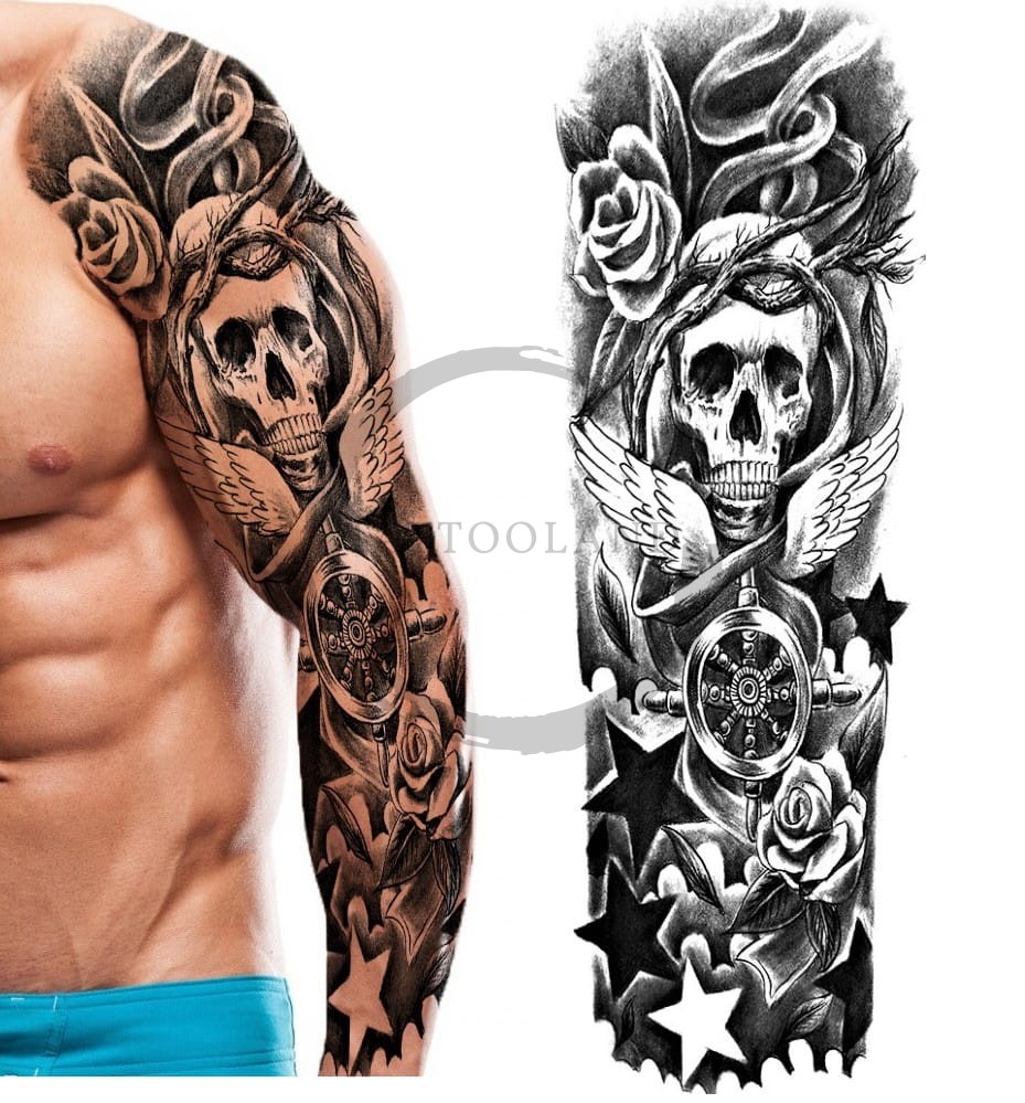 Tatuaż tymczasowy zmywalny rękaw czaszka gwiazdy