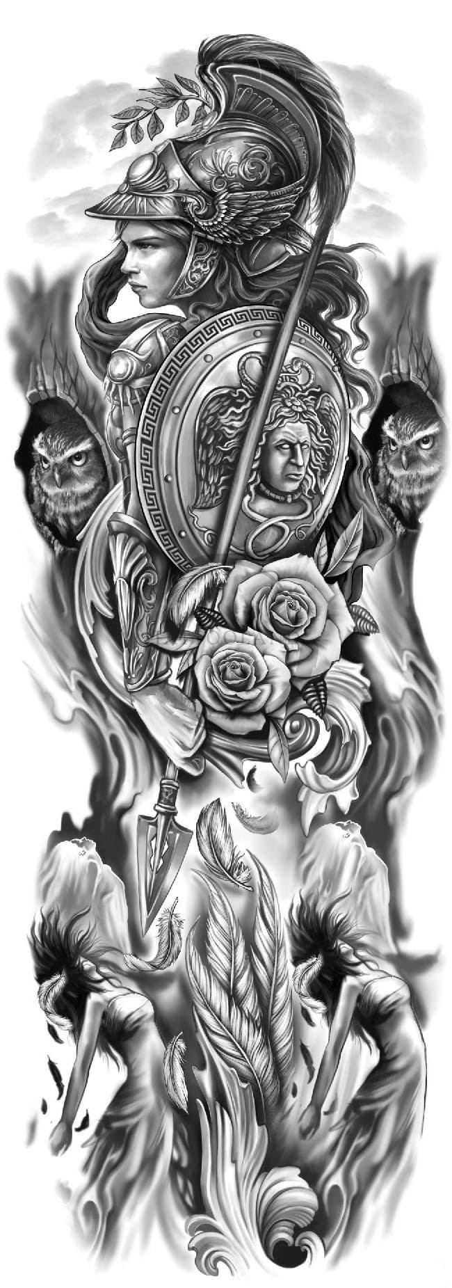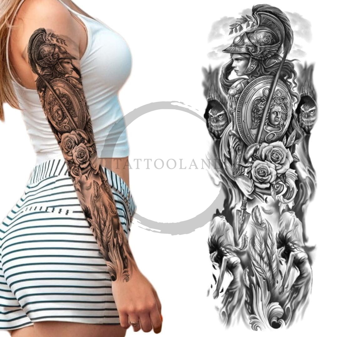 Tatuaż tymczasowy zmywalny rękaw damski armia pancerz tarcza oszczep