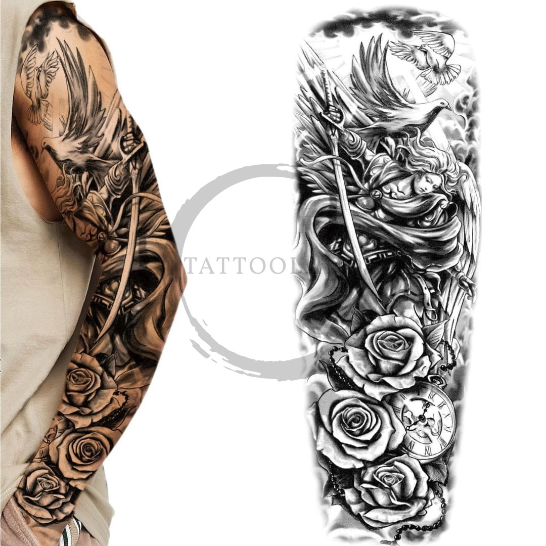 Tatuaż tymczasowy zmywalny rękaw rzymska bogini gołąb miecz