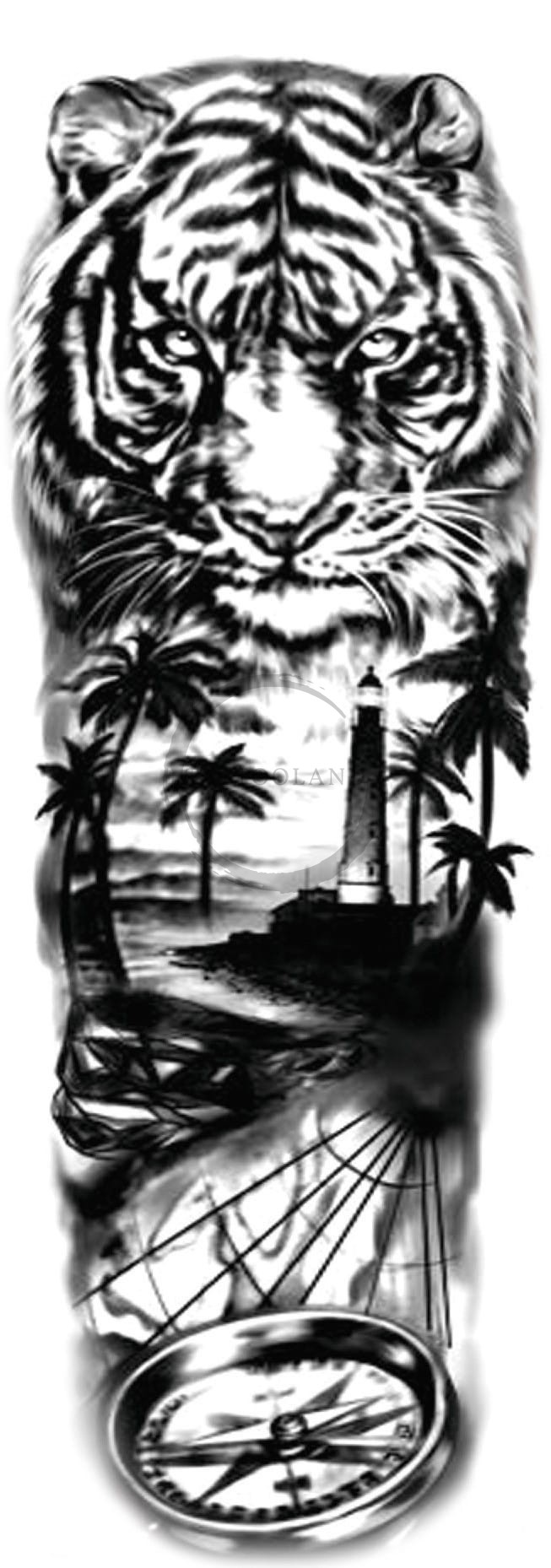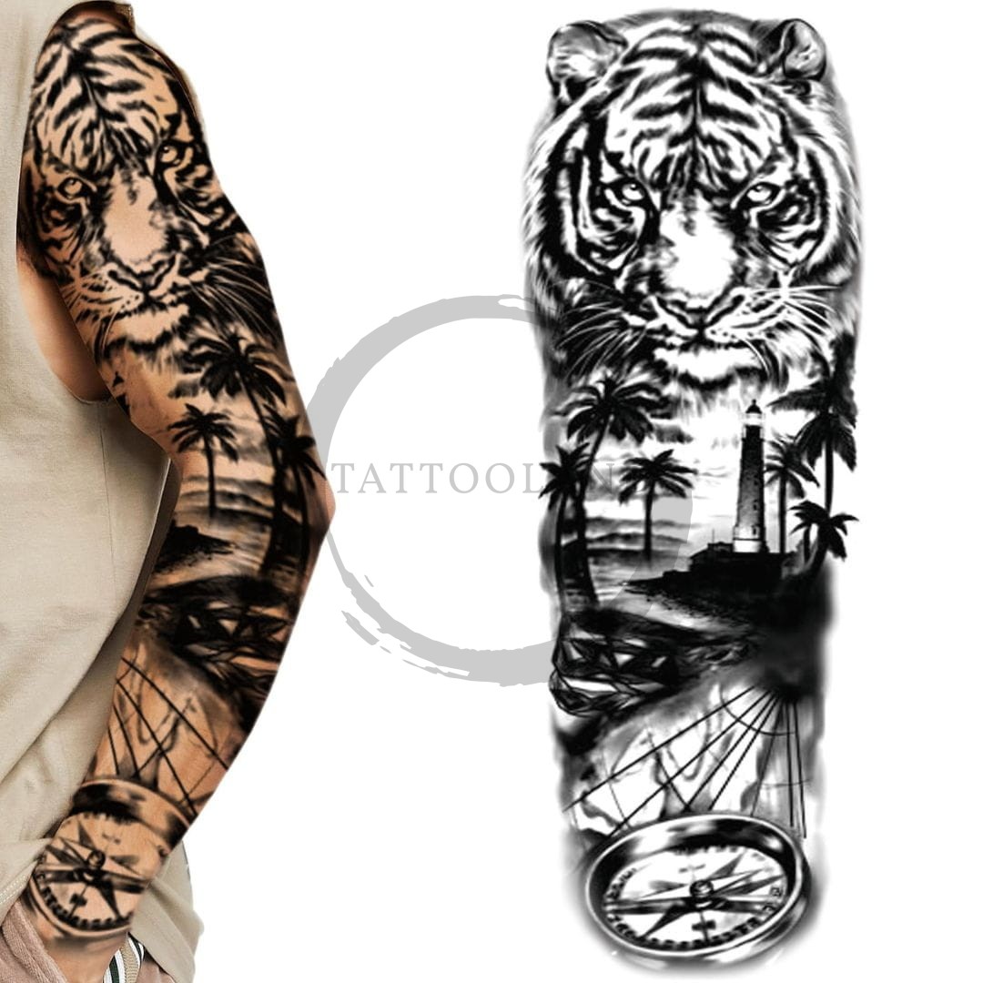 Tatuaż tymczasowy zmywalny rękaw tygrys palmy latarnia morska