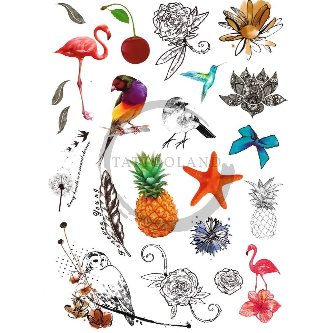 Tatuaże dla dzieci ananas wiśnia flaming mandala